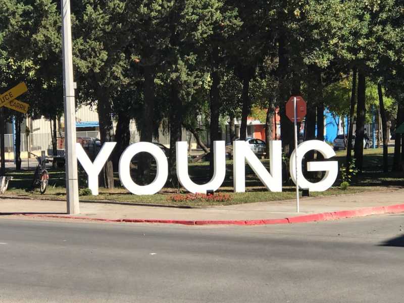 Este viernes a las 19:30hs se habilitará el letrero volumétrico gigante en hierro que forma la palabra YOUNG.