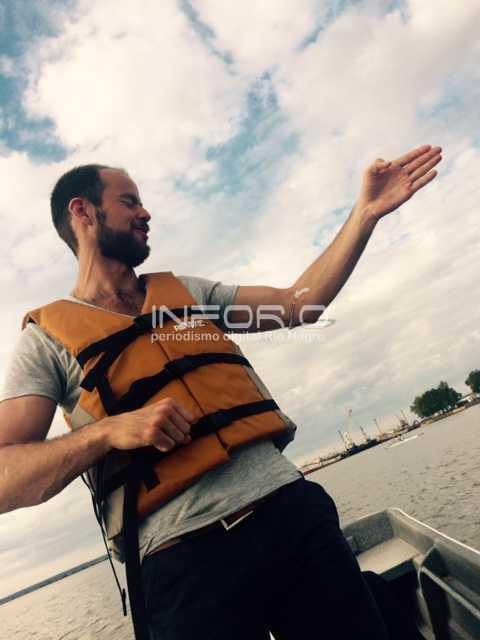 Llegó al Club de Remeros Mercedes la semana pasada y no quería regresar a Europa, sin antes conocer el Liebig's Rowing de Fray Bentos que porta en su casaca los colores de su país.
