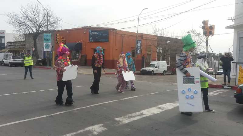 Unos 10 jóvenes realizan intervenciones de 40 segundos en los semaforos de Av. 18 de Julio y calle Rincón, donde se busca generar conciencia sobre el consumo de alcohol y el conducir automóviles. La actividad contó con el apoyo de la dirección de Tránsito de la intendencia de Rio Negro.
