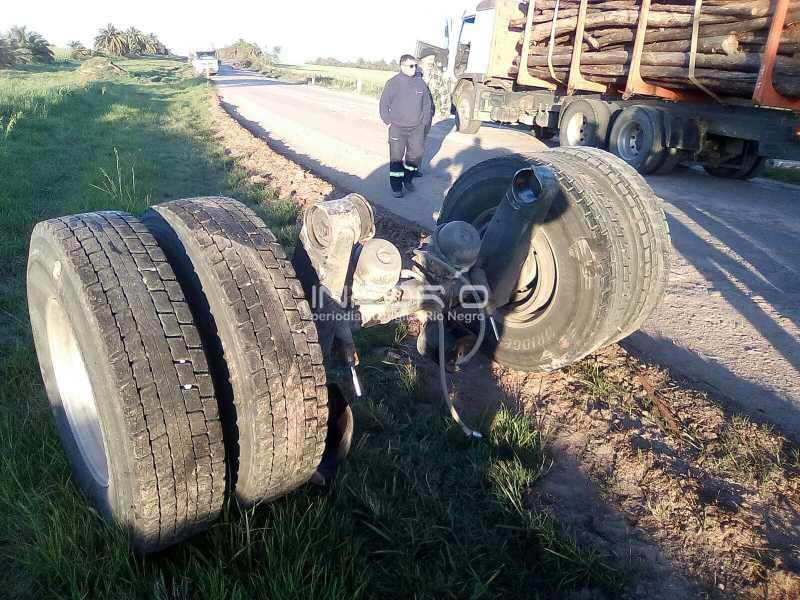 En la jornada de este viernes un camión cargado de madera, rompió el eje de la zorra en ruta 25 en el tramo entre Young y Algorta.