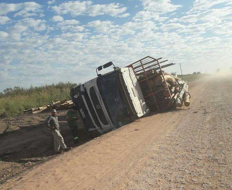 Esta mañana volcó un camión que transportaba madera en ruta 25 a unos 8 kilómetros de Young.