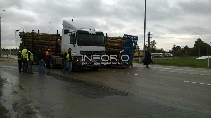 Segun la información recabada el camión Mercedes Benz JTP 2156 circulaba con rolos de madera rumbo a la planta de UPM cuando tomar la rotonda que hay en el lugar se le desprendió la zorra y el conductor quedó con el vehículo trancando una de las vías de circulación.