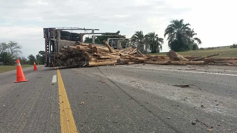 Según la información extraoficial que posee InfoRIO, el vehículo cargado de madera para el puerto de M'Bopicuá circulaba por la zona de la cortada de Ombucito cuando el conductor perdió el dominio del rodado y volcó en el lugar.