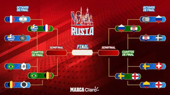 Luego juegan Brasil-Bélgica a las 15:00 y el Sábado, hora 11 lo hacen Inglaterra-Suecia y 15 horas Croacia-Rusia, en los otros 2 partidos..