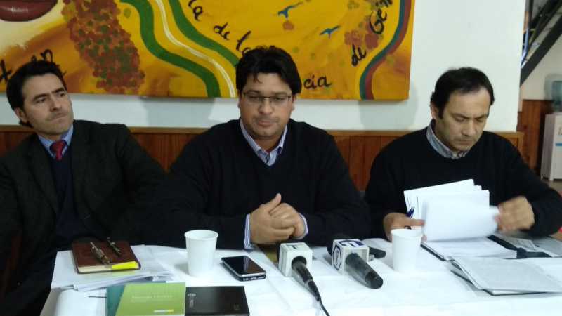 El presidente de ADEOM Miguel Ivanovich y el secretario Marcelo Fernández brindaron una conferencia de prensa acompañados del abogado del sindicato Giancarlo Montado donde informaron sobre los acontecimientos que ocurrieron en julio y que culminó con un acuerdo en la Dirección Nacional de Trabajo (DINATRA).