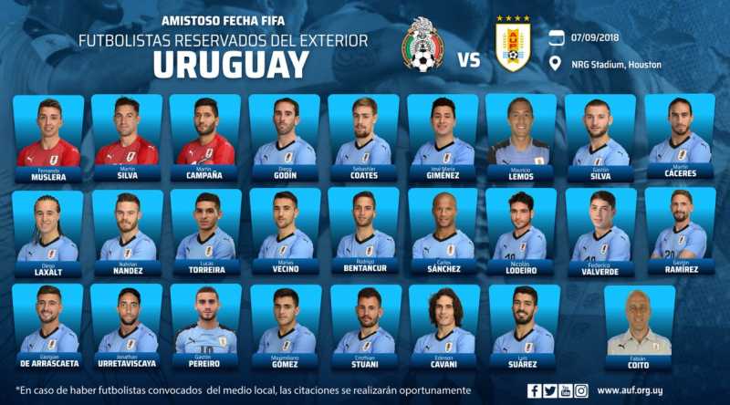En la lista de Coito, no aparece el delantero del PSG, Edinson Cavani ni el delantero del Celta de Vigo Maximiliano Gómez. Cabe recordar que ambos jugadores vienen de recuperarse de lesiones. Mientras que del medio local solo hay dos citados: Cristian Rodríguez y Guillermo Varela. Justamente Varela viajó en las últimas horas a Europa, con la mira de integrarse e un nuevo club. Su contratista le dijo en el mundial que no continuaría en Peñarol, porque tendría un nuevo club y en los hechos, no solo no tiene un nuevo equipo, sino que tampoco ha jugado para los aurinegros.