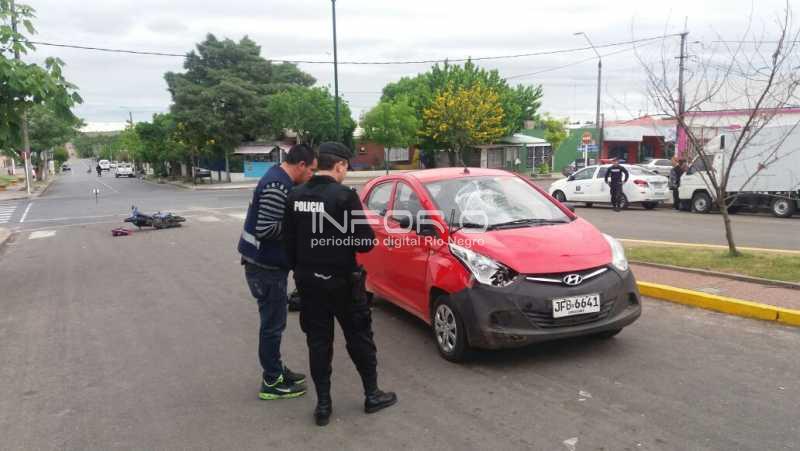 Según informa Jefatura de Policía de Río Negro, el miércoles a la 13:55hs, en 18 de Julio y Capdevielle, se produjo un siniestro de tránsito entre un automóvil y una moto. El mismo fue protagonizado por el auto Chevrolet Spark, matrícula SAL7304, el que era guiado por la persona feme...