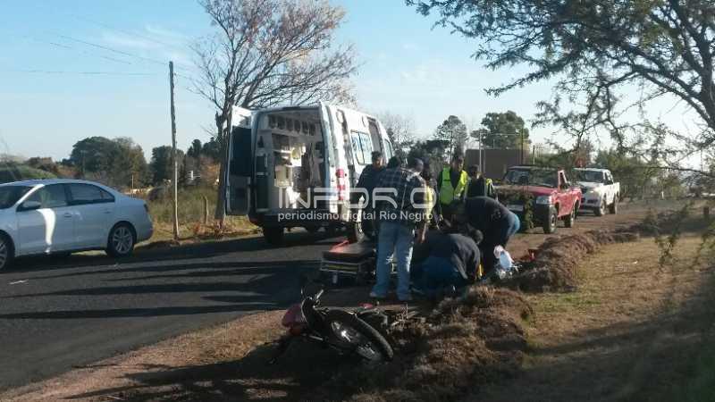 Según informa Jefatura de Policía de Río Negro ocurrió un siniestro de tránsito a la hora 18:50 en la intersección de camino La Feria y la Ruta Vladimir Roslik, donde una moto cayó al pavimento por un pozo existente en el lugar. La moto marca Winner Fair 110cc matrícula JFN011...