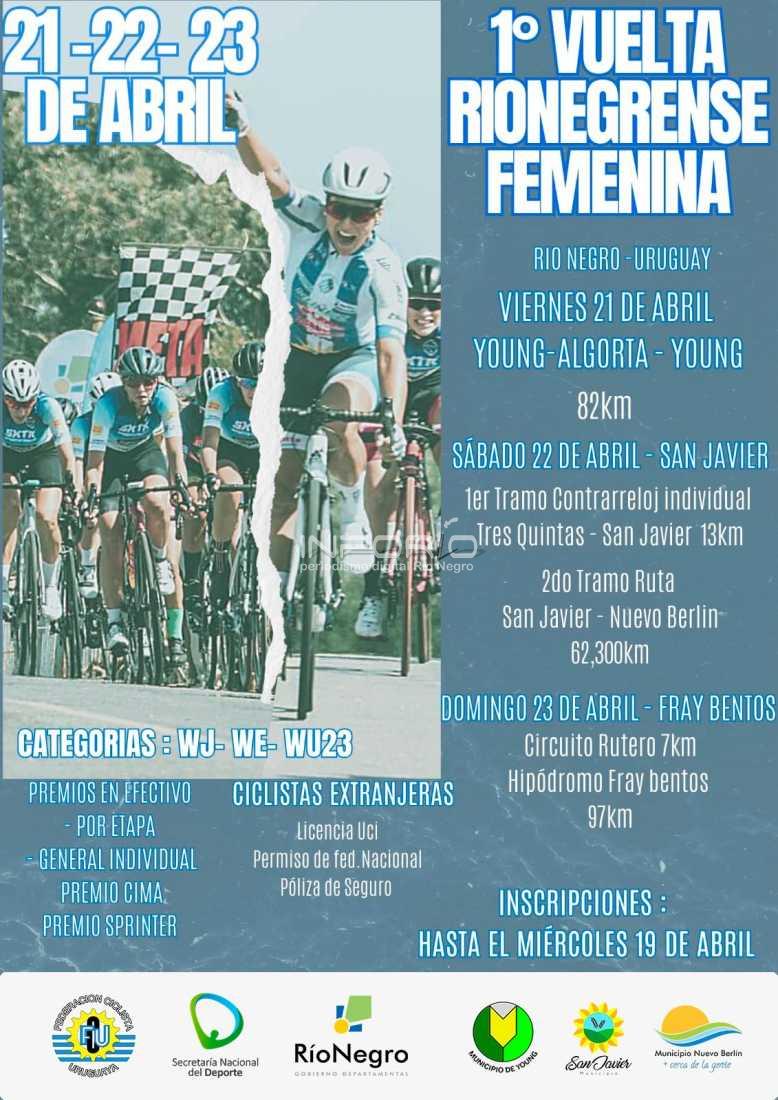 Entre viernes 21 y domingo 23, las más destacadas ciclistas del país, se encontraron en el Departamento de Río Negro, en lo que fue la 1ª Vuelta Rionegrense Femenina. Las chicas tuvieron su primera jornada el viernes 21 por la tarde; en lo que fue la competencia Young-Algorta-Young.Continuó el sábado 2...