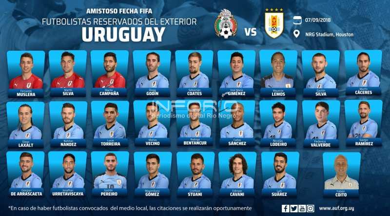 Fabián Coito dio a conocer la lista de jugadores reservados del exterior para enfrentar a México el próximo 7 de septiembre en Houston en un encuentro amistoso. La lista: Arqueros: Fernando Muslera (Galatasaray), Martín Silva (Vasco Da Gama) y Martín Campaña (Independient...