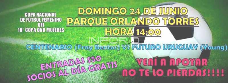 El Centenario FC por la 16ª Copa Nacional “Copa ONU Mujeres - Gol al Futuro”, declarado de Interés Deportivo por la Secretaría Nacional del Deporte, debuta el domingo, a partir de las 14:00 horas, en el Parque Orlando Torres, frente a Uruguay de Young. Entrada a $ 50.-