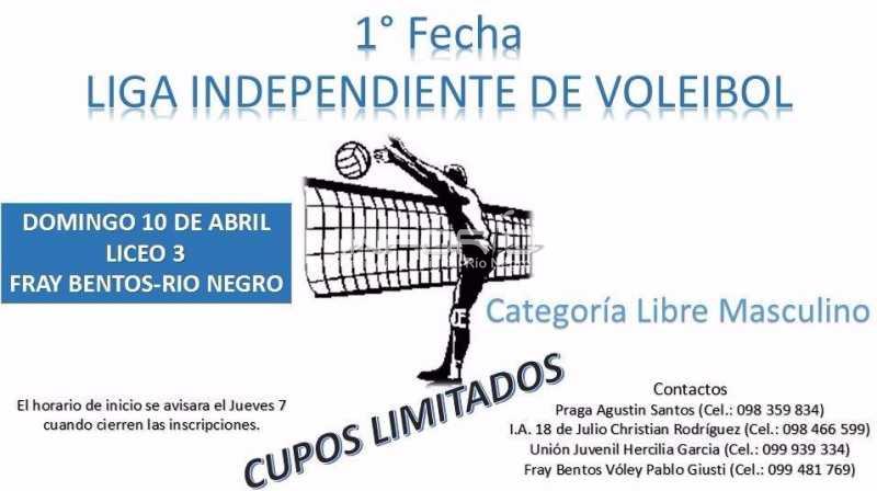 Desde las 09:30 horas y durante todo el día, en las instalaciones del Liceo Nº 3 de Fray Bentos se disputará el próximo domingo 10 de abril, la 1ª fecha del CAMPEONATO DE VOLEY LIGA INDEPENDIENTE. En ésta temporada se han sumado algunos equipos de lo que fue la experimental del 2015, y en ésta oportun...