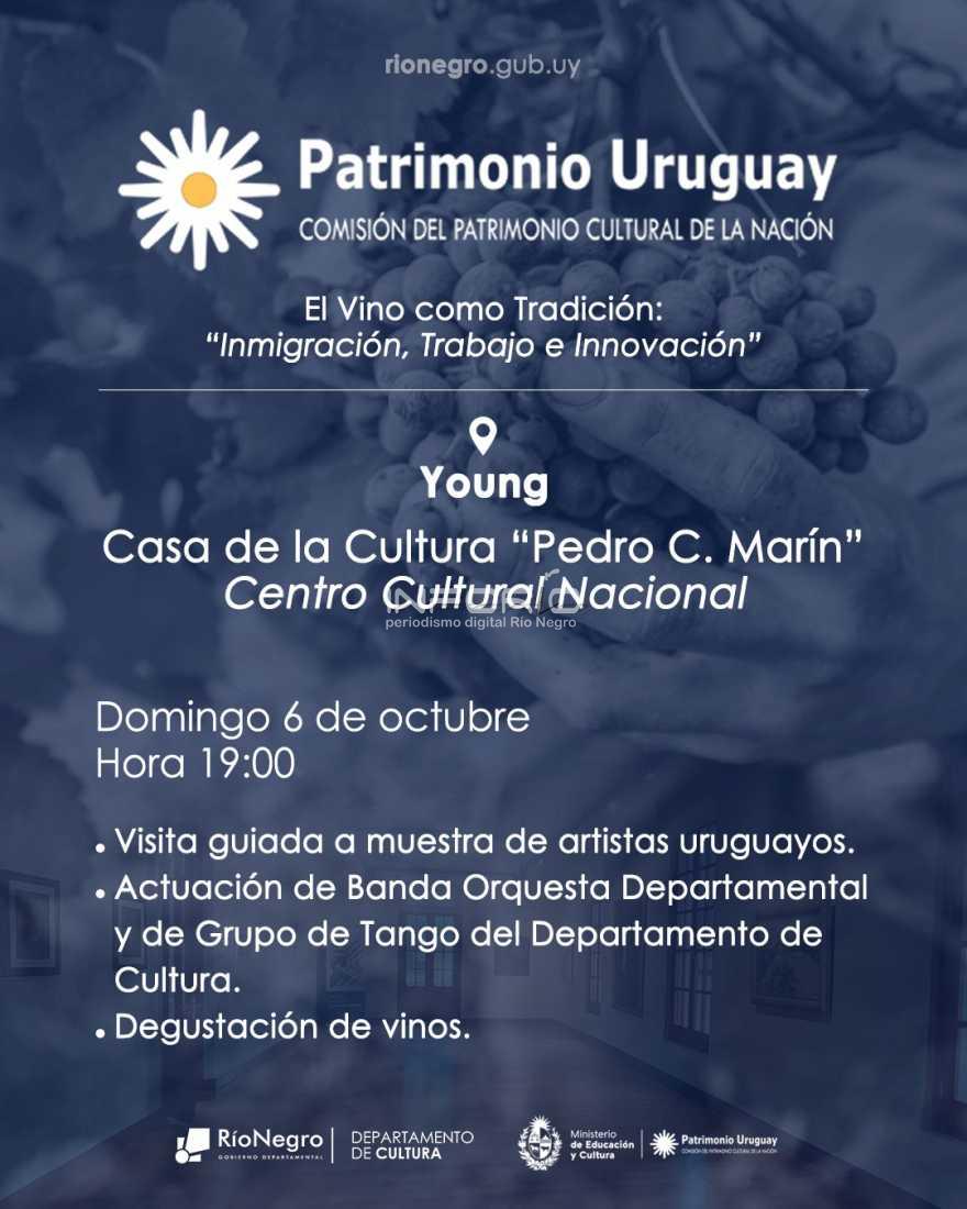 En el marco del tema elegido este año para celebrar el Día del Patrimonio: “El vino como tradición: Inmigración, Trabajo e Innovación”, en Young se ha planificado una actividad ha desarrollarse en la Casa de la Cultura “Pedro C. Marín”, Centro Cultural Nacional, en Young el ...