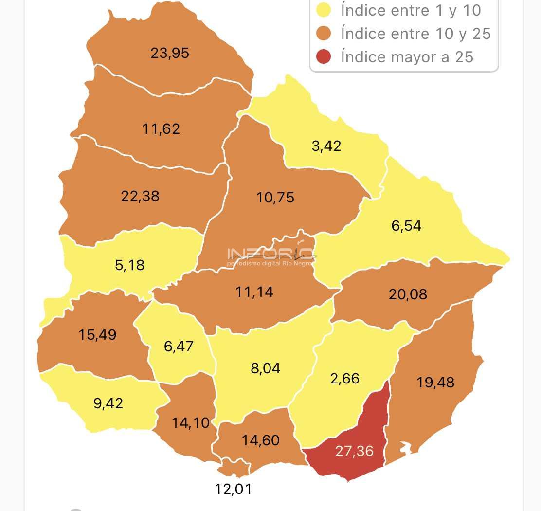 Río Negro tiene 105 casos activos y 11,11 de índice de Harvard. Estamos a un paso de pasar de color naranja a amarillo.