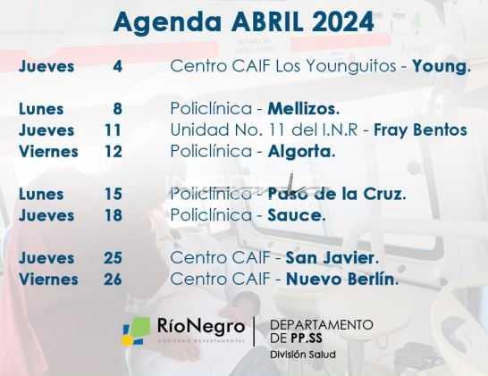 El Móvil Odontológico de la Intendencia de Río Negro, dependiente del área de Salud de la Dirección de Políticas Sociales, estará desarrollando una intensa actividad en el mes de abril recorriendo diversas zonas del departamento para atender la salud bucal de la población....