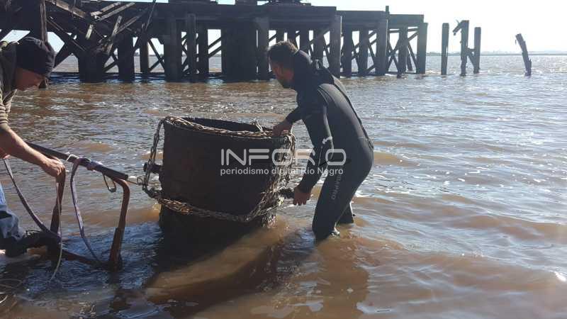 En la jornada de este miércoles se retiró del río Uruguay el objeto que fue hallado en la exploración subacuática realizada por arqueólogos en el río Uruguay. Esta pieza que data del siglo XIX era utilizada en el muelle del Anglo para la carga y descarga de buq...