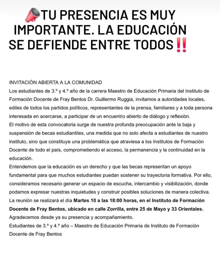 La Unidad de Juventudes de la Intendencia de Río Negro recuerda que se encuentra en el último mes de asesorías para quienes deseen postular a la Beca del Fondo de Solidaridad, destinada a estudiantes que proyectan iniciar estudios en UDELAR, UTU o UTEC. El plazo…