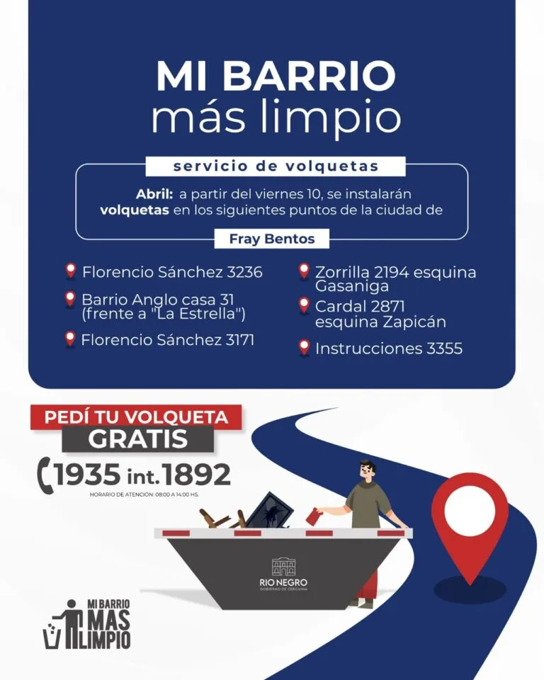 La Intendencia de Río Negro informa que se encuentran instaladas nuevas volquetas en diferentes puntos de la ciudad de Fray Bentos, con el objetivo de mejorar la gestión de residuos y fortalecer la limpieza urbana ♻️