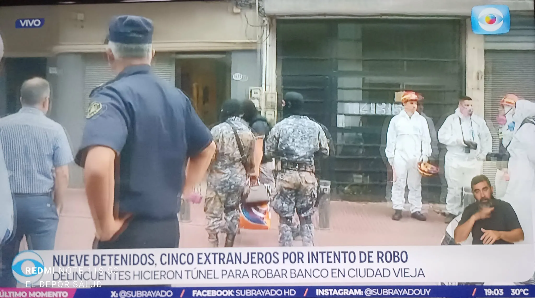 La Dirección General de Represión al Tráfico Ilícito de Drogas, de la DIPN, con apoyo de DIGOE, Bomberos y Policía Científica, trabaja en un operativo que hasta el momento cuenta con 5 detenidos, entre ellos extranjeros (de Brasil, y Paraguay), donde se localizó un túnel en Ciudad Vieja (Montevideo), entre las calles Colón y 25 de Mayo, desde un local comercial desocupado hasta el alcantarillado. Posiblemente el destino era una institución bancaria, por lo que el propio Ministro del Interior Carlos Negro, lo llamó lo que sería el Robo del Siglo.