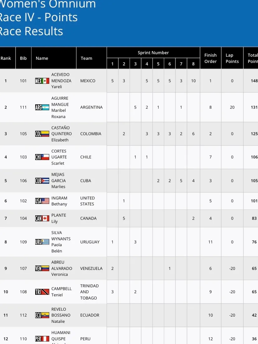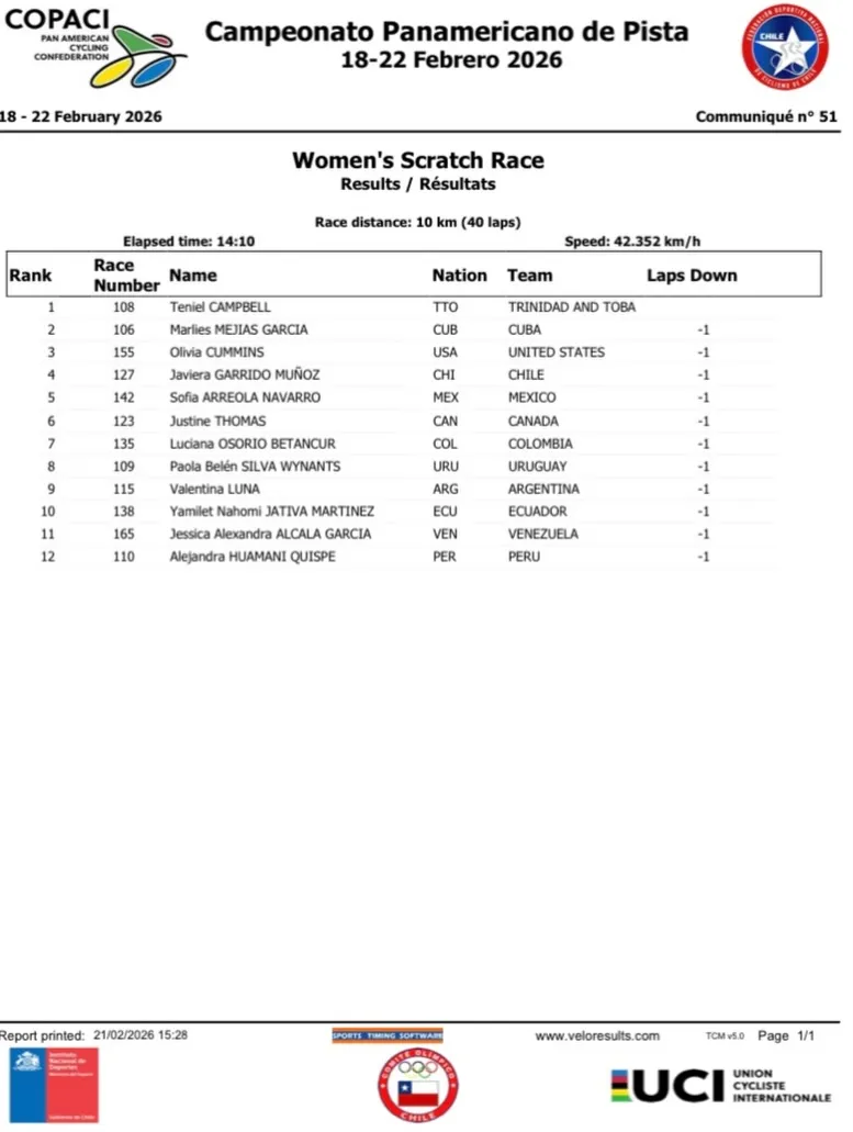 Las competencias se desarrollaron en el velódromo Peñalolén de Santiago de Chile, .