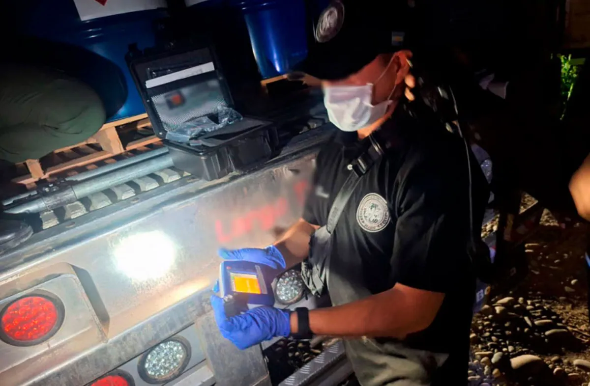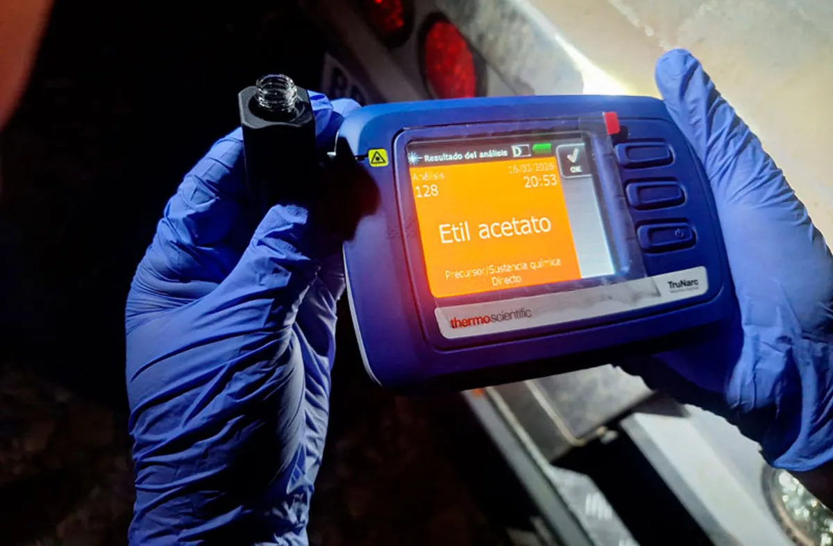 Durante la inspección, los efectivos de Gendarmería constataron inconsistencias en los papeles, lo que derivó en un control más exhaustivo. Allí se verificó que uno de los camiones transportaba 95 tambores y el otro 96, todos rotulados como acetato de etilo, con un peso individual de 184 kilos. El total alcanzó los 35.144 kilos, una sustancia incluida en la lista II de precursores químicos según la legislación argentina.