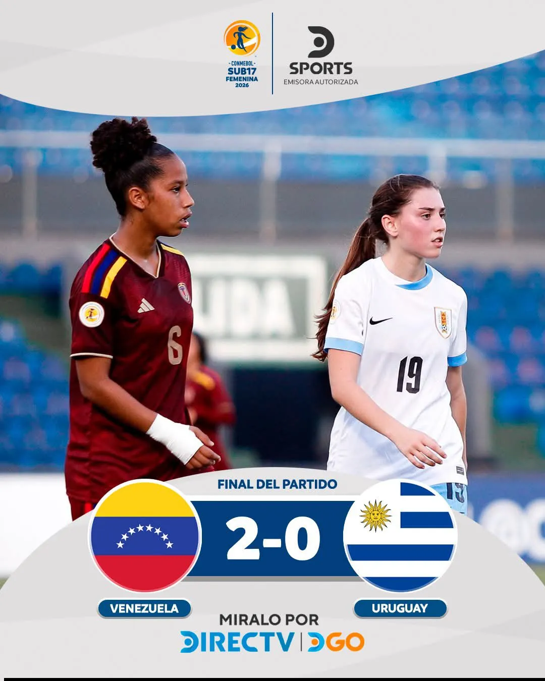 La selección femenina uruguaya de categoría U17, en su tercera presentación seguida en el Sudamericano de la categoría (que se juega cada 2 días), cayó ante Venezuela 0-2.