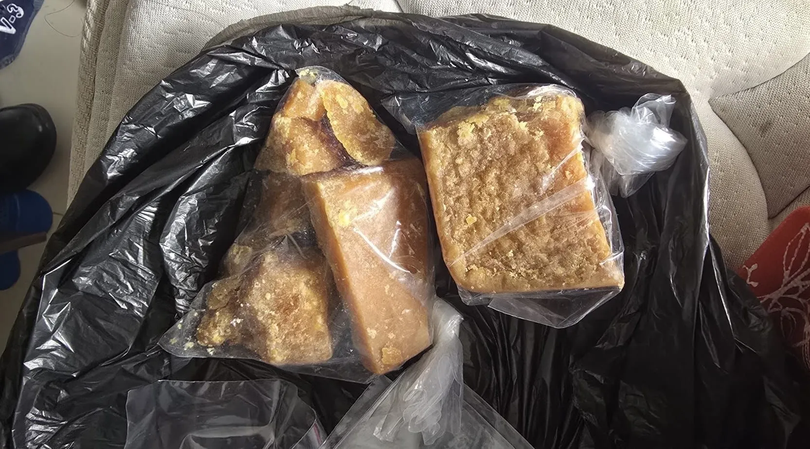 • 243 gramos de sustancia en piedra color ocre símil pasta base.