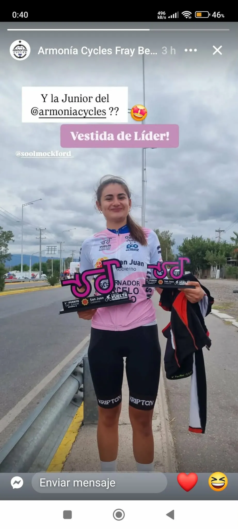 Culminó hoy la tercera etapa de la Vuelta de San Juan Femenina y la representante del Armonía Cycles de Fray Bentos llegó pimeroa al meta.