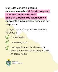 Uruguay reglamentó en abril de 2026 la Ley N.º 20.374, reconociendo la endometriosis como un problema de salud pública y enfermedad crónica que afecta a 1 de cada 10 mujeres. La norma obliga a prestadores públicos y privados a mejorar el diagnóstico temprano, la investigación y la atención integral para mejorar la calidad de vida de las pacientes.