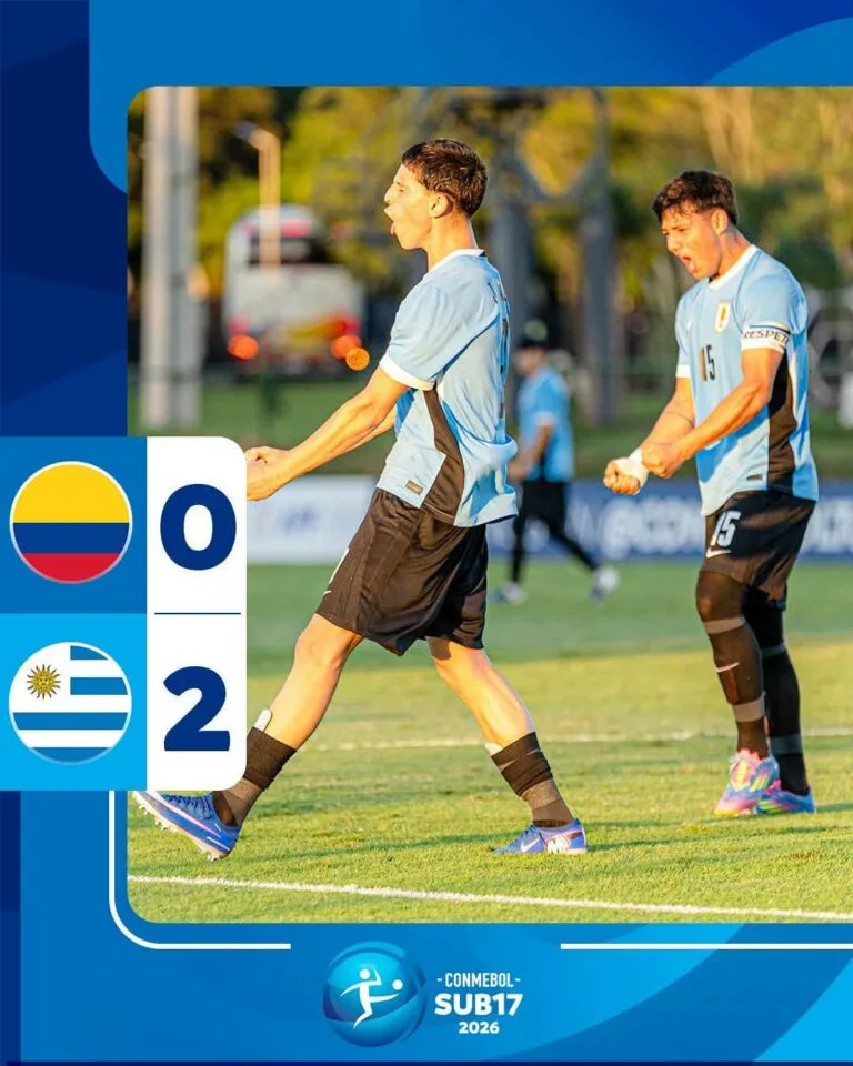 Uruguay jugó su último partido de la Serie A, ya que mañana sábado se juega la 5ta, fecha de la misma, pero Uruguay queda en calidad de libre. Fue su 4ta presentación ante Colombia (que estaba 2° con solo 2 juegos disputados) del Sudamericano Sub-17, que se disputa en Paraguay. Tras los dos primeros empates (ante Chile y Paraguay) Uruguay cayó ante Ecuador (puntero de la Serie y ya clasificado a Semifinales) y necesitaba ganar ante Colombia, para seguir soñando su pasaje al Mundial (que es su primer objetivo). La Celeste con dos goles de tiro libre derrotó a los colombianos y ahora depende de los resultados de la última fecha. Tabla de Posiciones: Grupo A: Ecuador 7 Pts.(+2), Uruguay 5 Pts.(+1), Chile (+0) y Colombia 4 Pts. (-1) y Paraguay 1 Pts. (-2)- Grupo B: Brasil (+8) y Argentina 6 Pts. (+4), Bolivia 4 Pts.(-3), Venezuela 1 Pts.(-1) y Perú 0 Pts. (-8)- Son 7 los cupos al Mundial y si entra en Semifinales ya los primeros 4 van al Mundial. Los celestes deben salir por lo menos 4° en su Grupo, para seguir teniendo chances, con partidos extras.