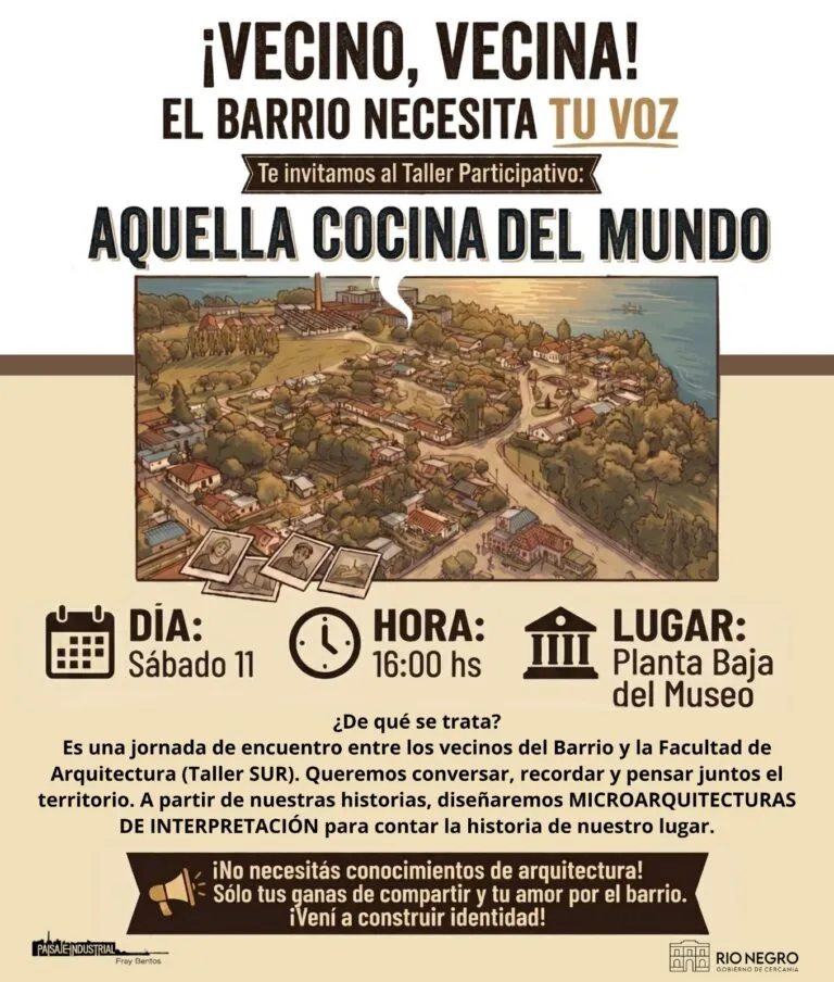 Los vecinos, especialmente del barrio Anglo, están invitados a formar parte del taller participativo: “Aquella cocina del mundo”, una propuesta que busca rescatar la memoria, las historias y la identidad del barrio Anglo a través del encuentro y la construcción colectiva. La actividad se realizará…